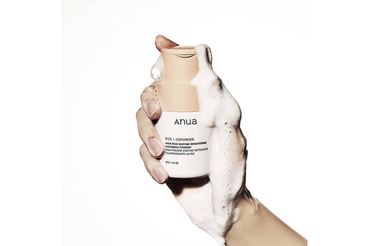 Энзимная пудра AnuaRice Enzyme Brightening Cleansing Powder очищает поры и полирует рельеф, придаёт ровный тон и сокращает видимость пигментации.